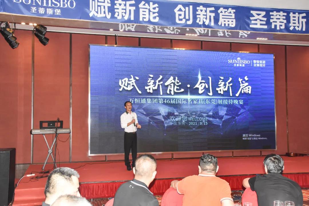 9月15日晚6时许,以“创新能,赋新篇”为主题的ng娱乐集团第46届国际家具展接待晚宴在虎门丰泰花园酒店举行。